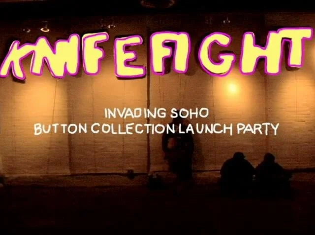 For this SoHo product launch party, KnifeFight is partnering with Busy Beaver Button Co. to present the first collection of the KnifeFight Button Series. This limited-edition collection of five designs printed on 24-Kr. gold-plated buttons (1″ diameter) will be on view and for purchase. Each button is designed by A.P. Smith to represent the fickle mood of KnifeFight at any given moment: Death Skull, Year of the Tiger, Statue of Liberty, Fuck You, KnifeFight.